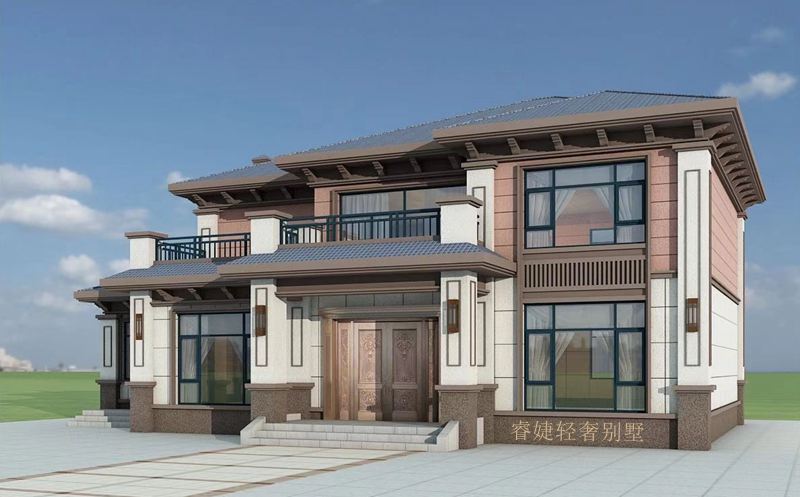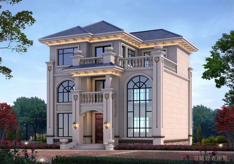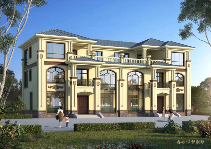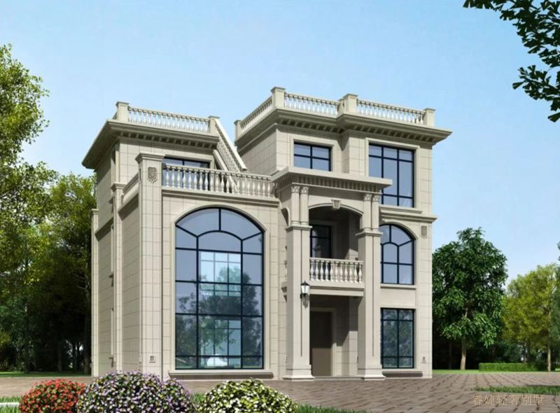 帶車庫和露臺的二層簡歐鄉(xiāng)村別墅